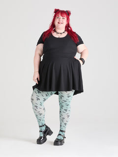 Deathcap Toadstool Tights Incantation: By the light of the waning moon, with herbs of nightshade and whispers of doom, I conjure thee, oh tights of green, with mushrooms dark, and glitter’s sheen.