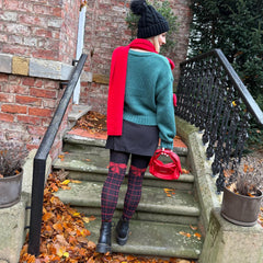 - Clever knitted design that mimics tartan thigh highs without the hassle