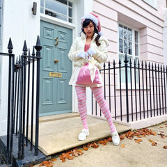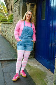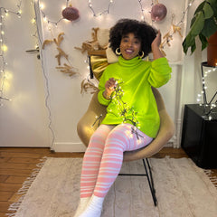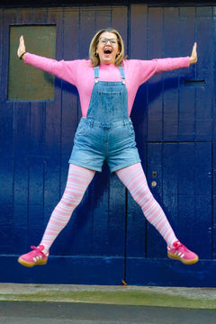 The sweetest, softest 80 denier tights with a creamy white base and delicate pastel pink diagonal stripes inspired by our Angel Delight shade. Gentle, charming, and full of whimsical wonder, they bring a touch of sweetness to even the simplest winter outfit.