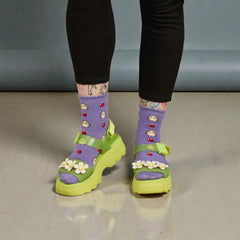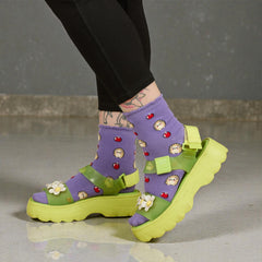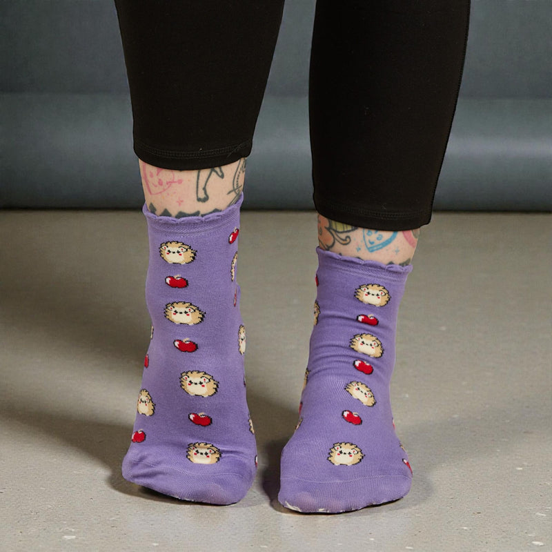 We’re talking tiny hedgehogs curled up with rosy red apples, all tumbling across a gorgeous deep purple background. Proper heart-melters for anyone who loves a bit of woodland magic or just fancies the cosiest toes in the room.