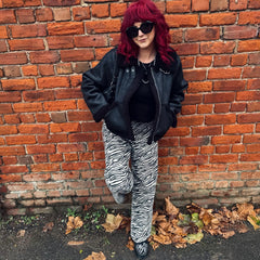 Buckle up and meet the Bessie Aviator Jacket in Black borg. This is aviator attitude wrapped in a teddy-bear hug. It is a vegan-friendly cropped jacket crafted from ultra-soft faux suede with plush borg trim on the collar and sleeve hems. Zip it up once and you are instantly wrapped in pure luxury that feels like stealing the duvet on a winter morning.