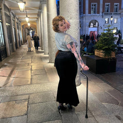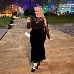 Crafted from the most super plush velvet imaginable, we've specially cut the fabric to ensure it retains its incredible plushness wash after wash, giving your bum a look so absolutely amazing you'll wonder what you did before it arrived. Seriously, it's so unbelievably soft, consider this your official warning: you won't be able to stop stroking your own butt—and frankly, neither will anyone else. It's so flexible it can pivot seamlessly between vintage siren, modern bombshell, or simply stand alone as the most incredible black skirt you'll ever own. And because we're not monsters, we made sure this showstopper is a drama-free zone: it's machine washable, so you can just chuck it in the washing machine after a night of dazzling.