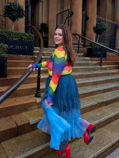Light, floaty and full of movement, this skirt catches the light from every angle. Lined at the top for comfort and confidence, it falls into sheer layered mesh below for a playful peep show effect that feels magical rather than revealing.