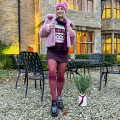 - The Upper: The tights transition into a gorgeous sheer burgundy upper, providing a comfortable fit and a subtle wash of colour up the leg.